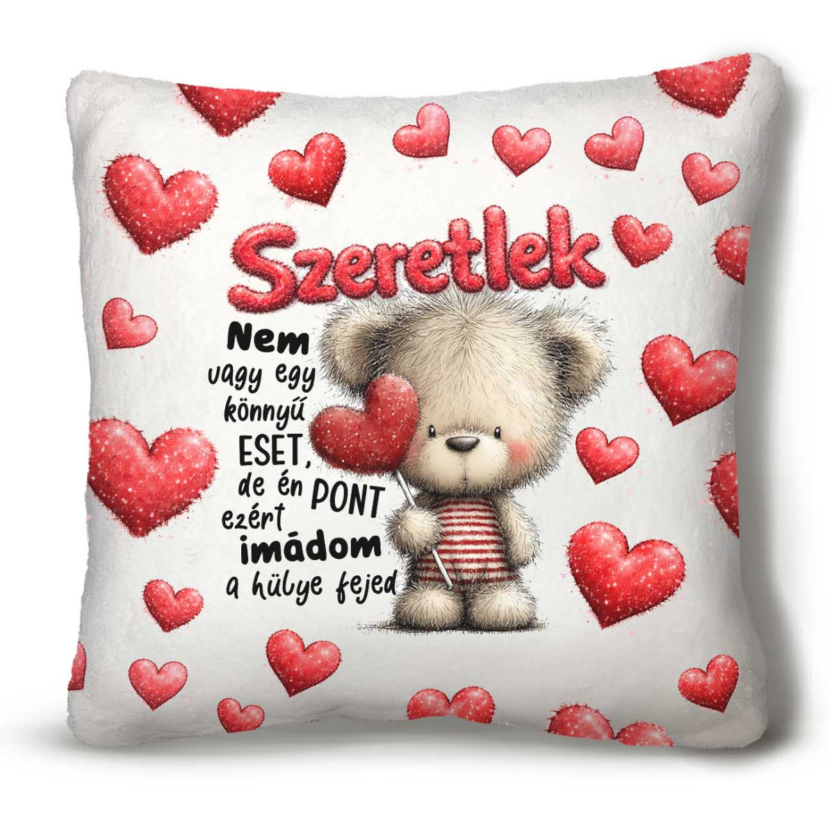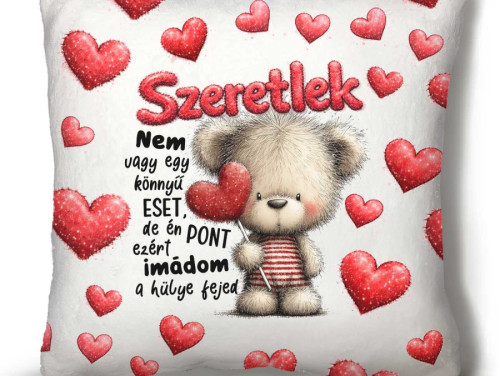 Ez a párna egy olyan Valentin napi ajándék, ami minden nap mosolyt csal az arcra – és emlékeztet arra, hogy a szeretet néha kicsit bolond, de mindig őszinte. ❤️