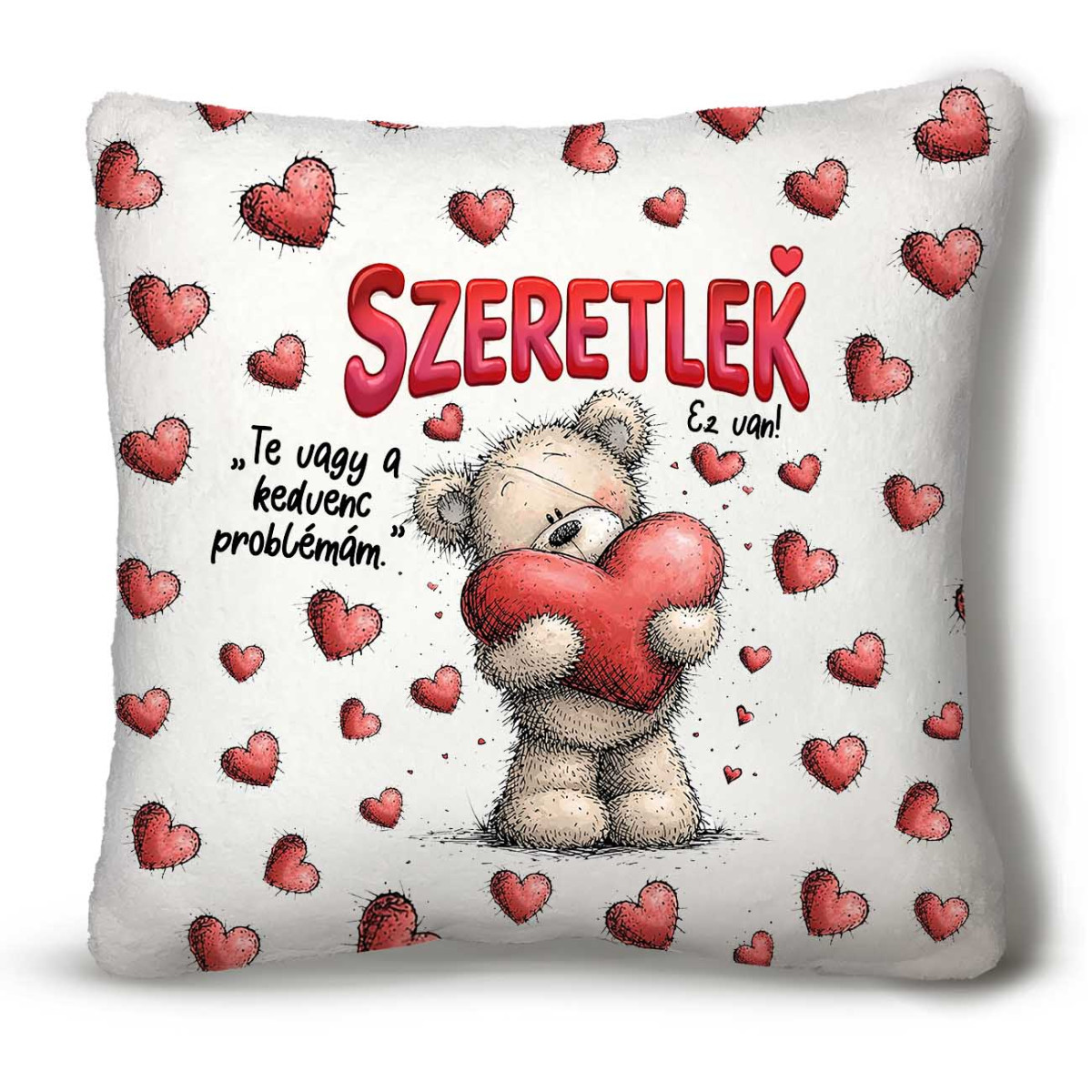 Nagy Négyzet Plüss Párna 45 x45 cm – Szeretlek, te vagy a kedvenc problémám - Valentin-napi ajándék plüss párna