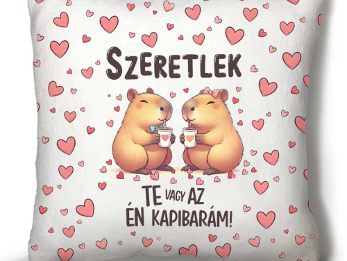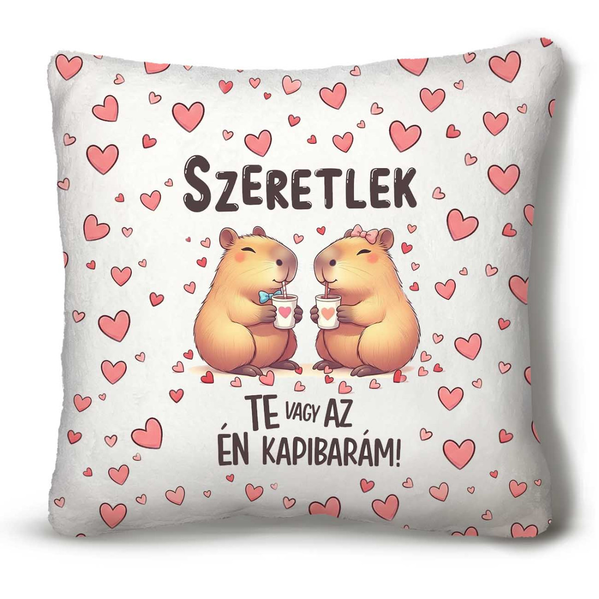 Valentin-napi ajándék plüss párna – „Szeretlek, te vagy az én kapibarám!”