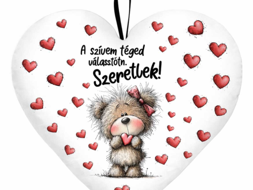 Nagy szív párna (45 cm) – A szívem téged választott macis szerelmes ajándék