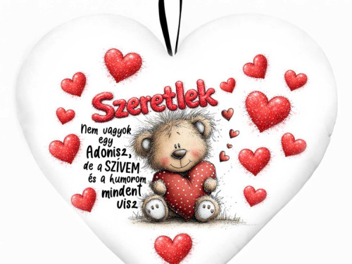 Ez a Valentin-napi ajándék nagy szív párna tökéletes választás, ha szeretnél egyszerre szerelmeset és vicceset ajándékozni. A cuki maci és az önironikus felirat gondoskodik róla, hogy az ajándék ne csak megható, hanem emlékezetes is legyen.