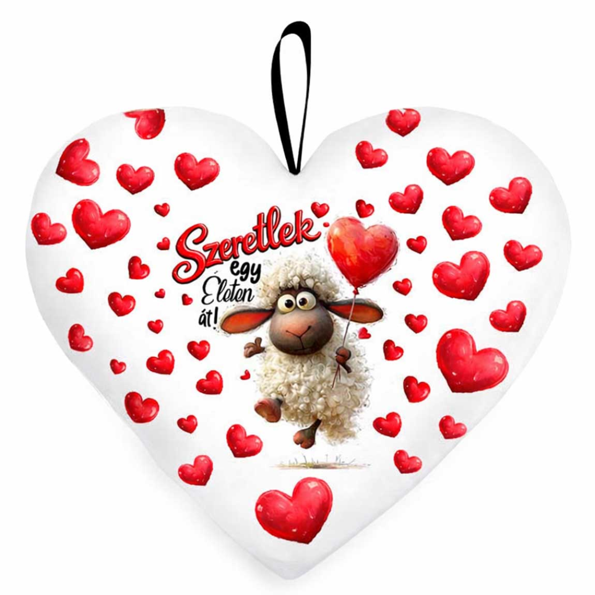 Ez a „Szeretlek egy életen át” feliratú nagy szív párna tökéletes választás, ha nem csak egy pillanatnyi ajándékot szeretnél, hanem egy igazi, szívből jövő üzenetet. A vidám bárány és a sok apró szív együtt mesélnek az örök szeretetről.