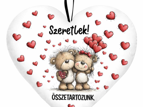 Nagy szív párna (45 cm) – Szeretlek, összetartozunk macis szerelmes ajándék
