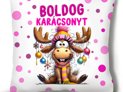 Boldog Karácsonyt karácsonyi díszpárna – Vidám rénszarvas mintával