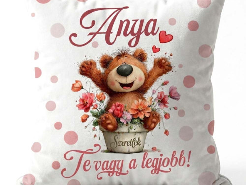 Ez a díszpárna kiváló Anyák napi ajándék ötlet, de tökéletes választás édesanyák születésnapjára, névnapjára vagy akár karácsonyra is. A kedves mackó figura miatt különösen népszerű ajándék kisgyermekektől vagy unokáktól a nagymamáknak.