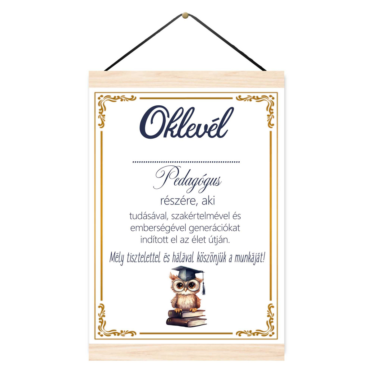 A pedagógusok munkája nem csupán tanítás, hanem útravaló az élethez. Ez az A4-es méretű prémium oklevél tökéletes választás, ha szeretnétek kifejezni hálátokat az osztályfőnöknek, tanárnak vagy óvónőnek az év végén, ballagáskor vagy pedagógusnap alkalmából.