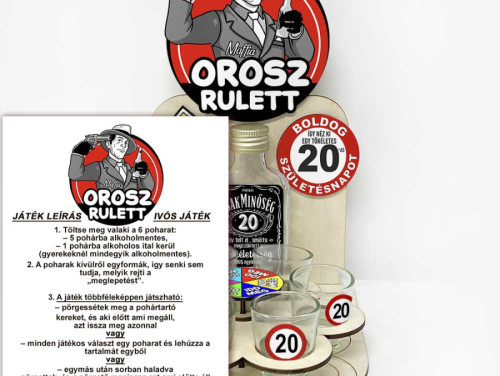Ha valami igazán vagány, lendületes és 20. születésnapra tökéletes ivós játékot keresel, a 20-as Orosz Rulett a legjobb választás. Garantált a nevetés, a meglepetés és a buli hangulat!