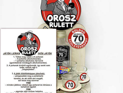 Ha szeretnél egy igazán vagány, humoros és élménydús ajándékot adni a 70. születésnapra, akkor a 70-es Orosz Rulett ivós játék a legjobb választás!