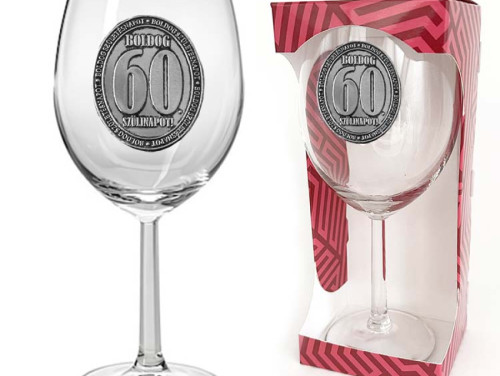 Borospohár 60. Születésnapra – Elegáns Fémcímkével (440 ml)