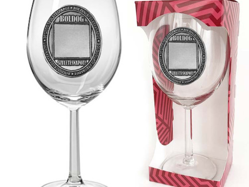 Ovális Fémcímkés Borospohár - Boldog Születésnapot! - feliratú borospohár - Egyedi Számmal Rendelhető Születésnapi Ajándék