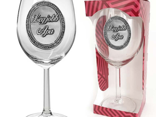 Ovális Fémcímkés Borospohár - Legjobb Apa felirattal - Ajándék Apáknak