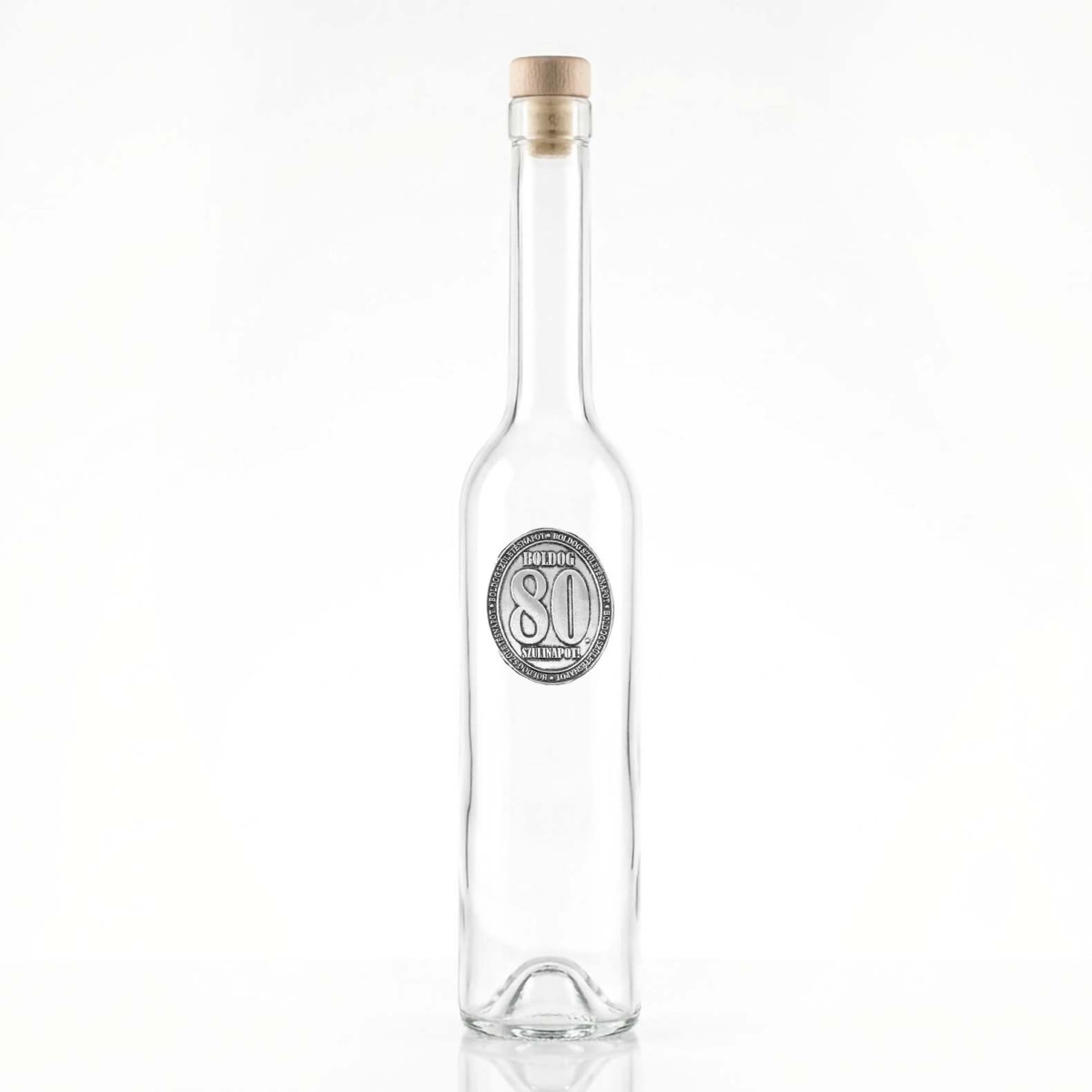 - Kézműves Hatású Fémcímke: Az üveget egy antikolt, ovális fémcímke díszíti „Boldog 80. Születésnapot” felirattal, ami klasszikus és értékes megjelenést kölcsönöz.