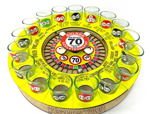 Tedd felejthetetlenné a 70. születésnapot ezzel a látványos és szórakoztató ivós játékkal! A Részeges Rulett garantált nevetést és pörgést hoz a társaságba.