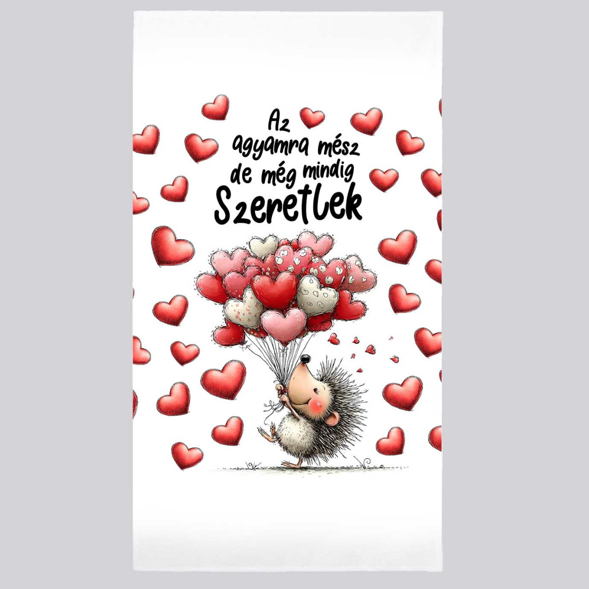 A kedves sünis minta és a szívecskés grafika egyszerre humoros és romantikus, így ideális választás Valentin-napra, évfordulóra, születésnapra vagy csak egy spontán „csak úgy” meglepetésnek.