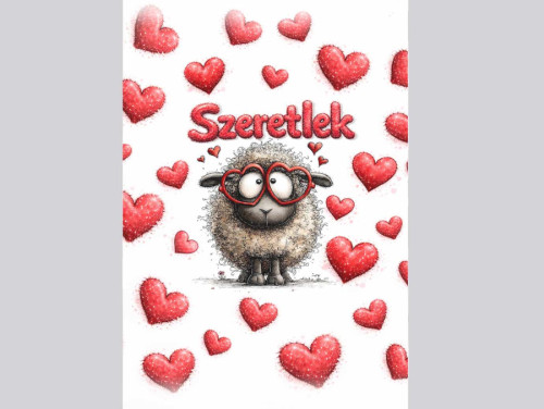 0 értékelés a következőhöz: Szerelmes mintás törölköző 50×100 cm - „Szeretlek” szöveggel, vicces szemüveges bárány mintával törölköző | Vicces, szerelmes ajándék