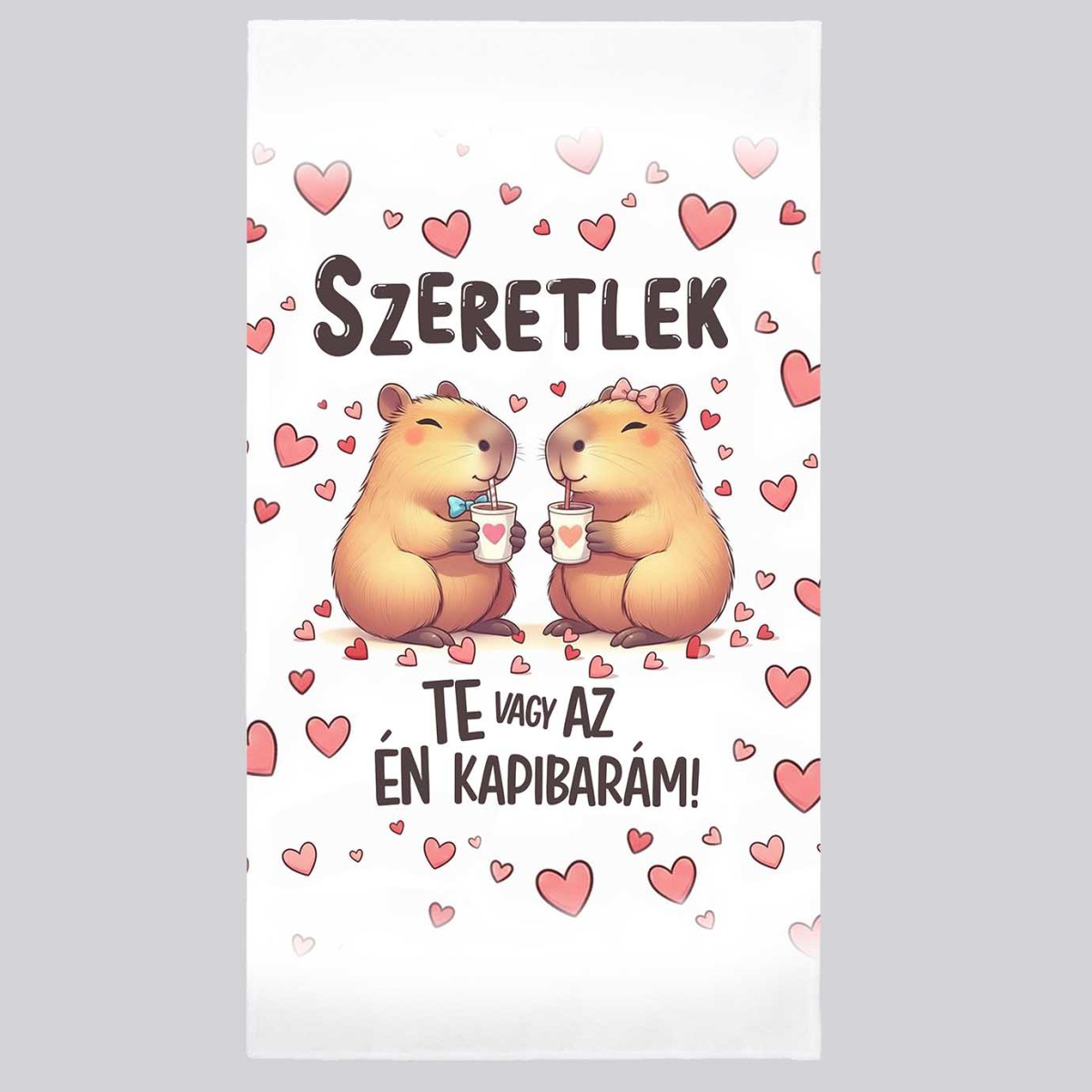 0 értékelés a következőhöz: Szerelmes mintás törölköző 50×100 cm - "Szeretlek Te vagy az én Kapibarám" feliratú kapibarás törölköző – Valentin napi ajándék