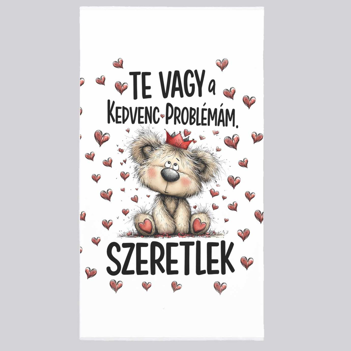 Szerelmes mintás törölköző 50×100 cm - Te vagy a kedvenc problémám, Szeretlek | Valentin napi ajándék