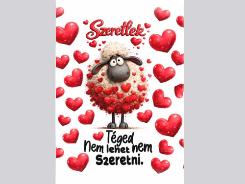 A bájos bárányos illusztráció és a szívecskékkel díszített design tökéletes választás Valentin-napra, évfordulóra, születésnapra vagy csak úgy, szeretetből.