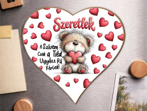 Szerelmes szív hűtőmágnes – „A szívem csak a tiéd” – Valentin napi ajándék