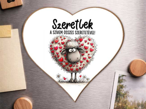 Egy igazán érzelmes és megható Valentin-napi ajándék, amely tiszta szeretetet közvetít. Ez a szív alakú hűtőmágnes kedves báránykás grafikával és szívecskékkel díszített mintával készült.