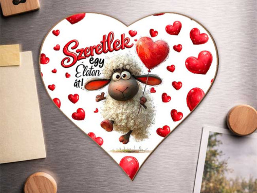 Egy igazán megható és időtálló szerelmes ajándék, amely az örök szeretet üzenetét hordozza. Ez a szív alakú hűtőmágnes kedves bárány figurával és piros szívecskékkel díszített mintával készült.
