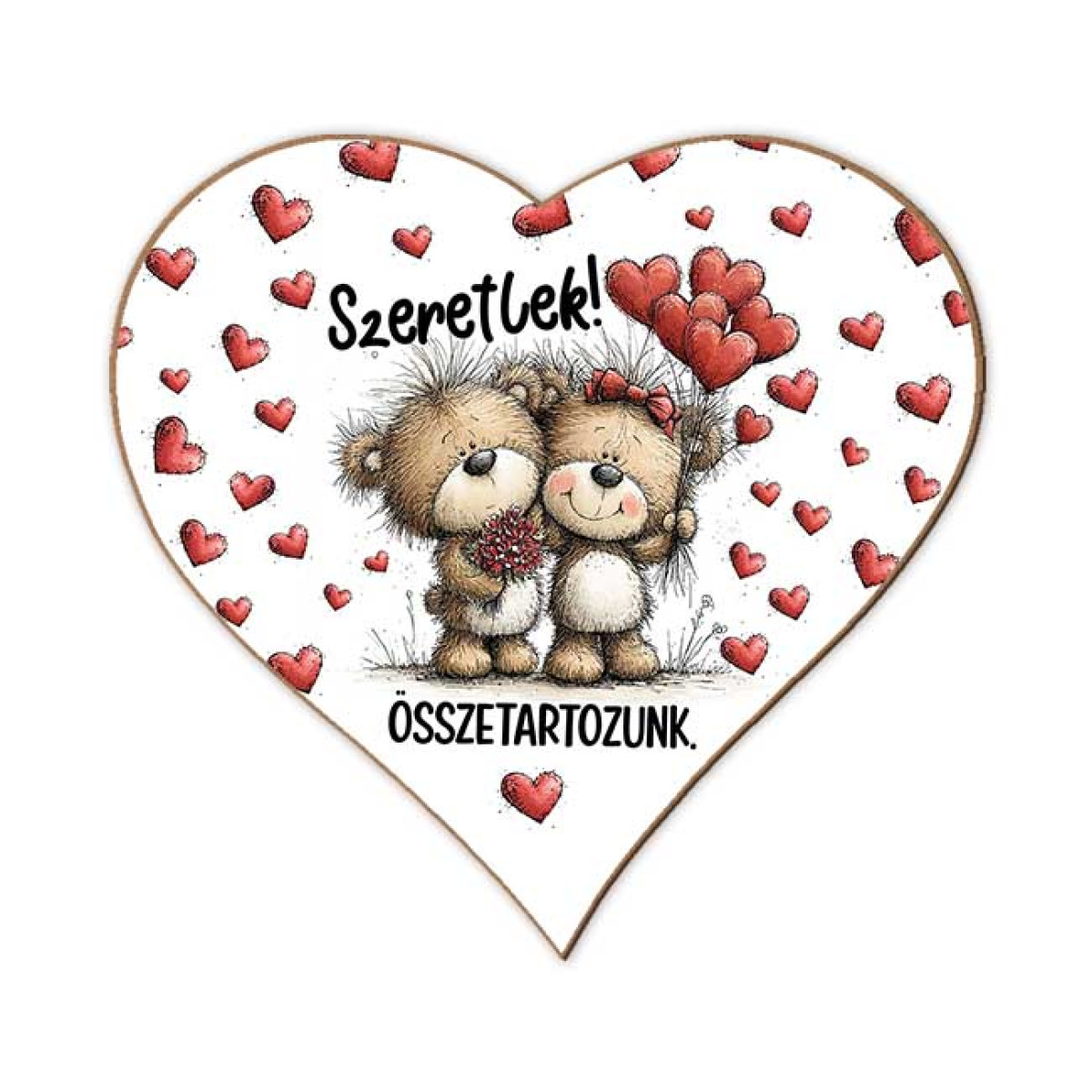Szerelmes szív hűtőmágnes – „Szeretlek, összetartozunk”
