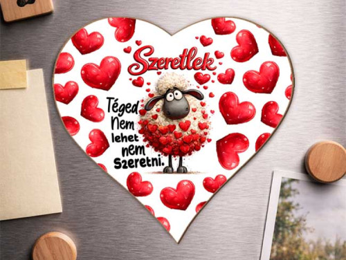 Egy igazán megható és pozitív Valentin-napi ajándék, amely tiszta szeretetet és őszinte érzelmeket közvetít. Ez a szív alakú hűtőmágnes kedves bárány figurával és szívecskékkel díszített mintával készült.