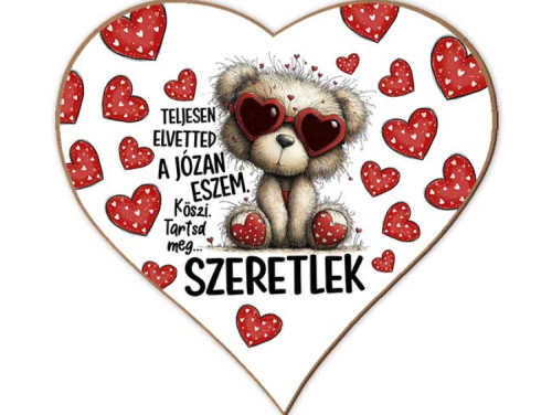 Ez a szív alakú hűtőmágnes aranyos macis grafikával, szívecskés háttérrel és a népszerű felirattal készült: „Teljesen elvetted a józan eszem.”