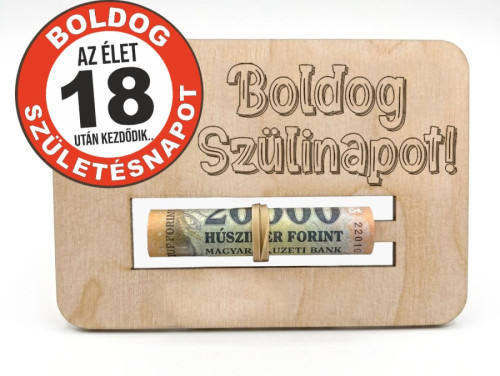 A 18. születésnap az egyik legfontosabb mérföldkő: a hivatalos felnőtté válás pillanata. Ha ezen a jeles napon pénzt szeretnél ajándékozni az ünnepeltnek – legyen szó jogosítványról, továbbtanulásról vagy az első nagy utazásról –, válaszd a boríték helyett ezt az egyedi, gravírozott fa pénzátadó táblát!