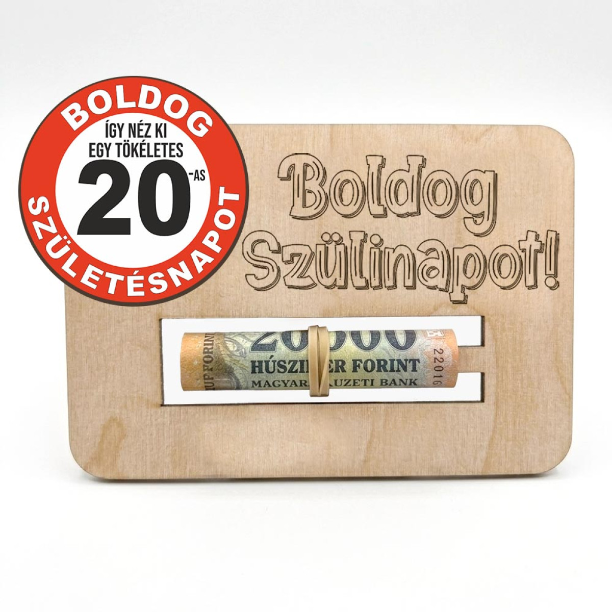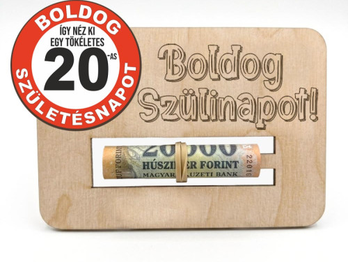 A 20. születésnap egy különleges mérföldkő: búcsú a tinédzserkortól és a felnőttkor valódi kezdete. Ha ezen a jeles napon pénzt szeretne ajándékozni – legyen szó az első saját lakás berendezéséről, továbbtanulásról vagy egy bakancslistás utazásról –, válassza a boríték helyett ezt a fa pénzátadó táblát!