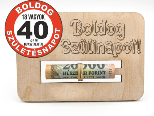 A 40. születésnap egy különleges mérföldkő, amit sokan a „B-oldal” kezdetének neveznek. Ha egy negyvenes ünnepeltnek szeretne pénzt ajándékozni, tegye azt humorral és stílussal! Felejtse el a személytelen borítékokat, ez a gravírozott fa pénzátadó tábla garantáltan az ünnepség egyik legemlékezetesebb darabja lesz.