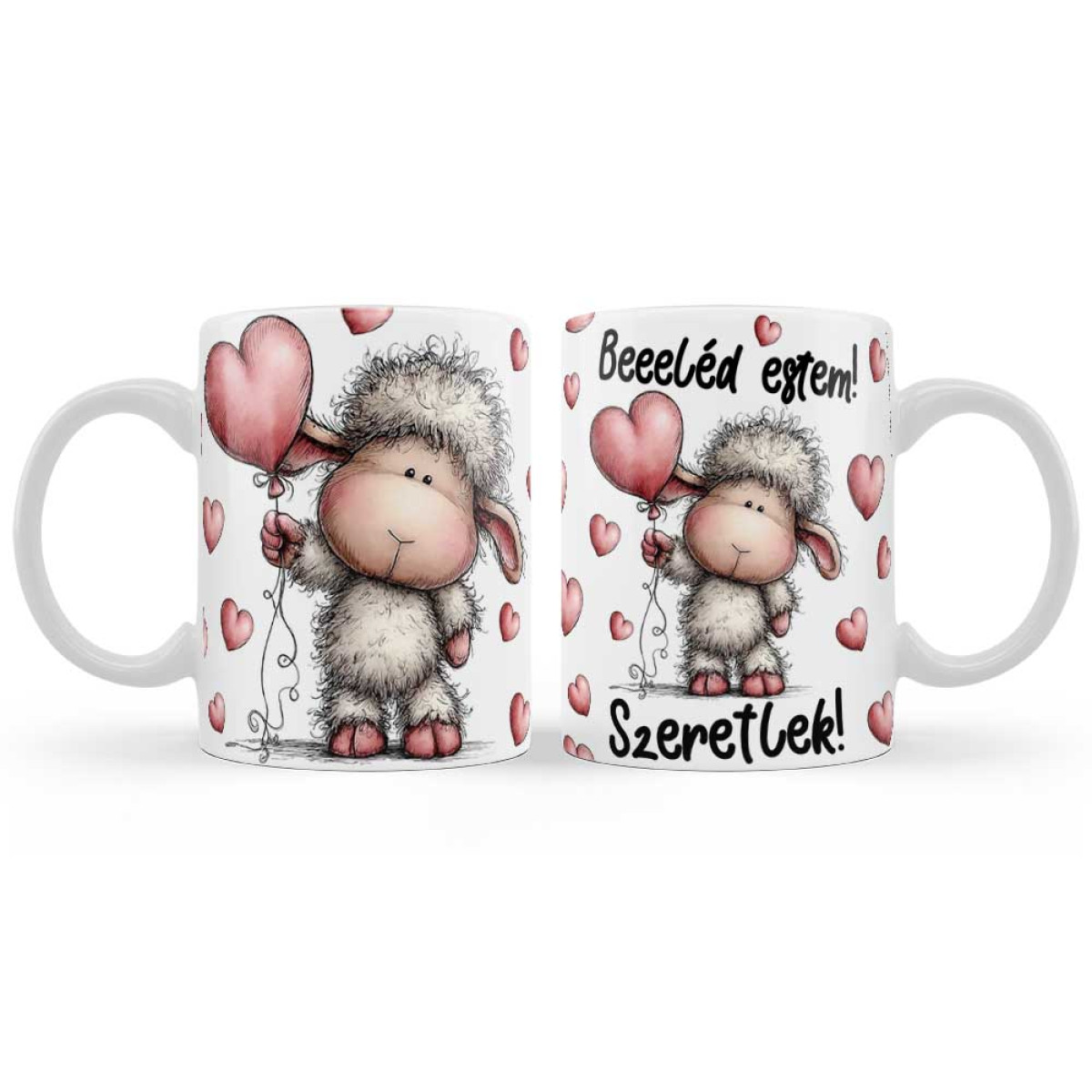 Valentin Napi Bögre 3dl - Beeeléd estem - Szeretlek Bárányos Bögre - Valentin Napi Ajándék - Szerelmes Ajándék