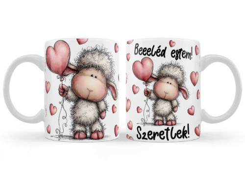 Ha egy igazán cuki és mosolyt csaló Valentin-napi ajándékot keresel, ez a bárányos bögre telitalálat. A szívecskés lufit tartó aranyos bárány és a „Beeeléd estem!” felirat egy kedves, szójátékos üzenet, amitől az ajándék egyszerre romantikus és viccesen szerethető. A másik oldalon a „Szeretlek!” felirat teszi teljessé az üzenetet.