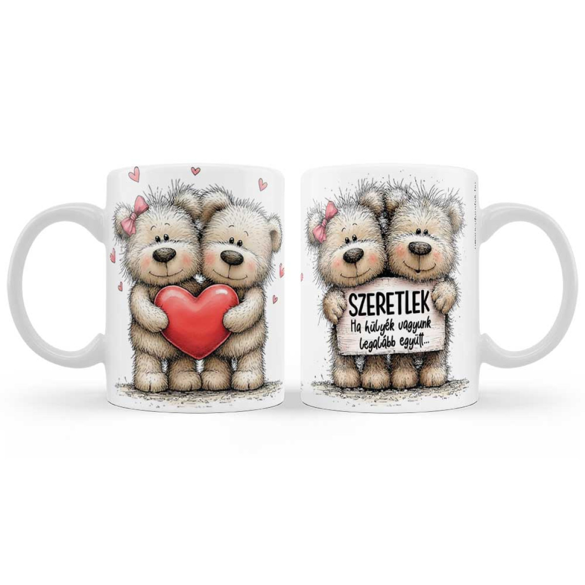 „Szeretlek – ha hülyék vagyunk, legalább együtt” – Vicces szerelmes macis bögre