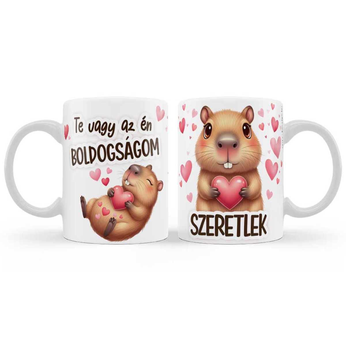 „Te vagy az én boldogságom” – Kapibarás szerelmes bögre („Szeretlek” felirattal)