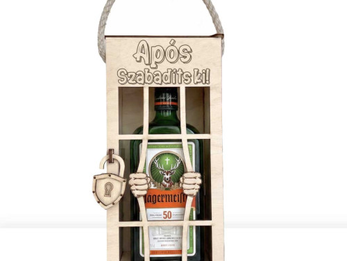 Vicces Börtönös Italos Díszdoboz Fa Italtartó 0,7 l Italokhoz - Após Szabadíts ki! felirattal Gravírozva - Ajándék Apósnak