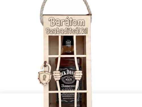 A dekoratív fa börtönrács mögé zárt ital egyedi ajándékélményt nyújt, legyen szó születésnapról, névnapról, buliról, legénybúcsúról vagy baráti összejövetelről.