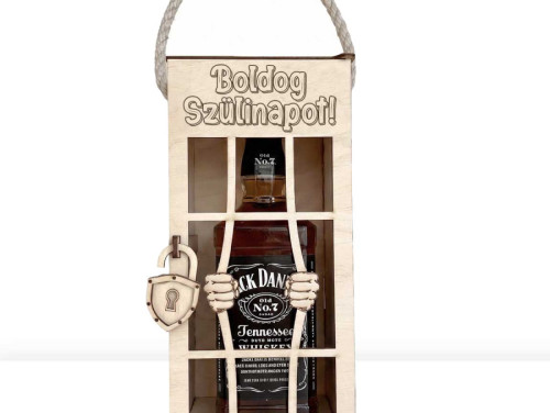 A fa börtönrácsos kivitel és a lakattal ellátott ajtó játékos formában zárja rabságba az ajándék italt. A „Boldog Szülinapot” felirat személyessé és ünnepivé varázsolja a meglepetést. A kiszabadítás csak a mellékelt kulcs segítségével lehetséges, így a szülinapi koccintásig izgalmas feladat vár az ünnepeltre.