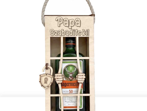 Ha igazán különleges, humoros és emlékezetes ajándékot keresel papának vagy nagypapának, akkor a „Papa – Szabadíts ki!” feliratú börtönös italos díszdoboz telitalálat lesz! Ez az egyedi fa italtartó nemcsak egy palack ital tárolására szolgál, hanem egy vidám „szabadulós” élményt is ajándékoz az ünnepeltnek.