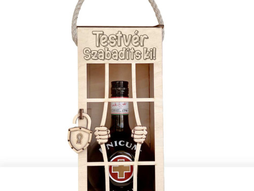 Vicces Börtönös Italos Díszdoboz Fa Italtartó 0,7 l Italokhoz - Testvér Szabadíts ki! felirattal Gravírozva - Ajándék Testvérnek