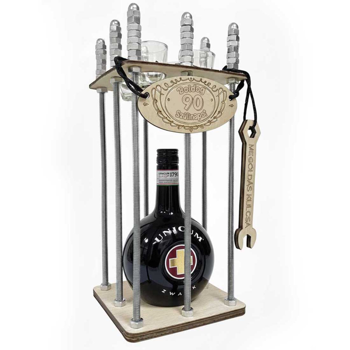 Lepd meg az ünnepeltet egy igazán különleges és humoros 90. születésnapi ajándékkal! Ez a fém rácsos börtönös italtartó nem csupán látványos díszdoboz, hanem egy igazi élményajándék is: az italt csak a mellékelt „Megoldás kulcsa” segítségével lehet kiszabadítani. A nevetés, a meglepetés és az emlékezetes pillanatok garantáltak!