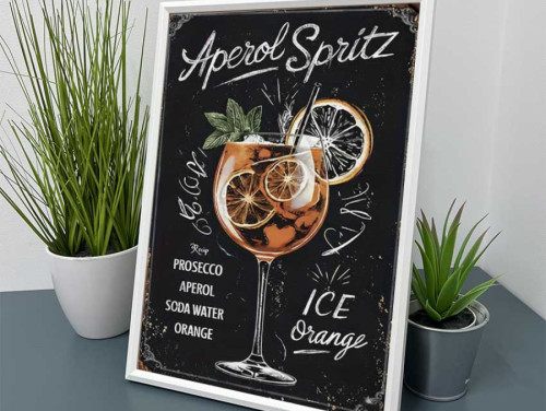 Vicces Kép Kerettel 21×30 cm – Aperol Spritz - Italrecept dekor konyhába, bárba