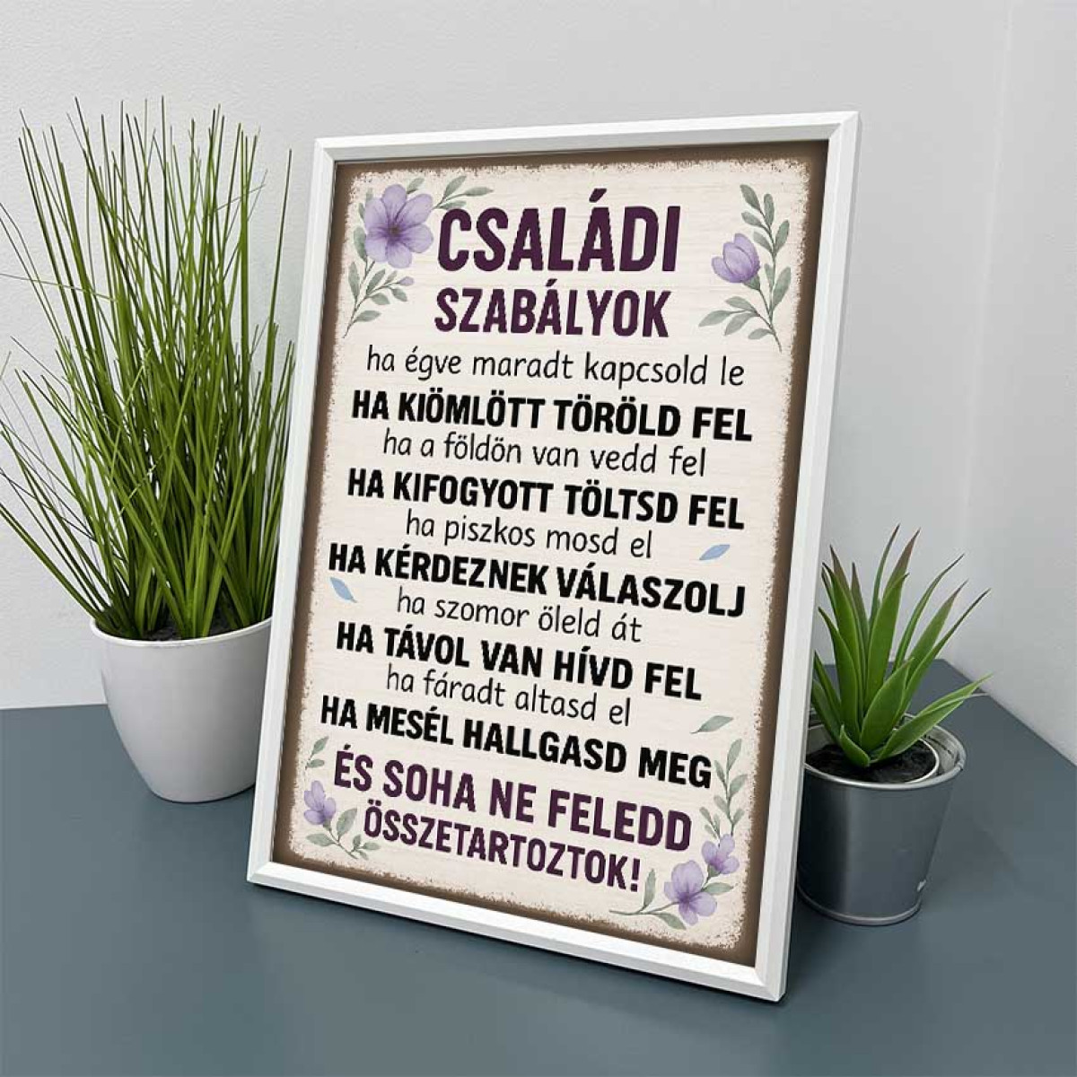 Vicces Kép Kerettel 21×30 cm – Családi Szabályok - Otthoni dekor és ajándék