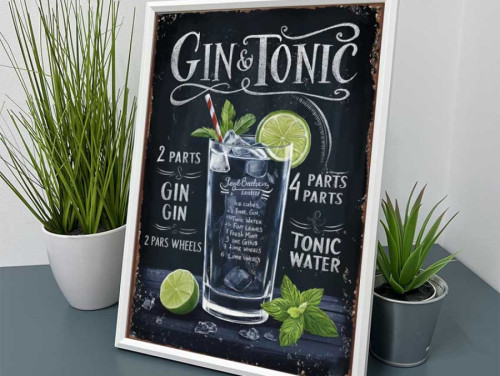 Tökéletes konyhai dekorációként, bárpulthoz, étkezőbe vagy éttermi faliképként, de ajándéknak is kiváló azok számára, akik szeretik a gin frissítő ízét és a stílusos koktélokat.