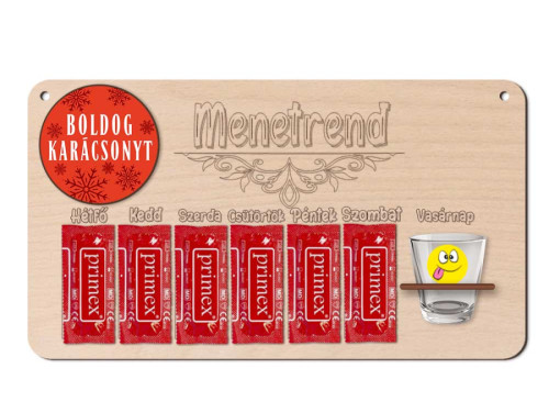 Vicces karácsonyi ajándék – Heti Menetrend tábla óvszerrel és pálinkás pohárral
