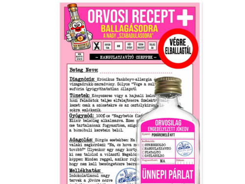 A recept kíméletlenül őszinte diagnózist állít fel: Krónikus Tankönyv-allergia és Vizsgadrukk-maradvány. A javasolt gyógymód pedig nem más, mint a 100%-os „Nagybetűs Élet Elixírje”!