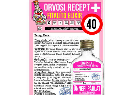 Vicces 40. Születésnapi Ajándék – „Fiatalító Elixír” Orvosi Recept