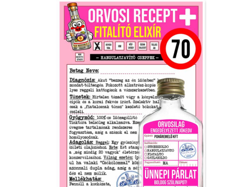 Vicces 70. Születésnapi Ajándék – „Fiatalító Elixír” Orvosi Recept