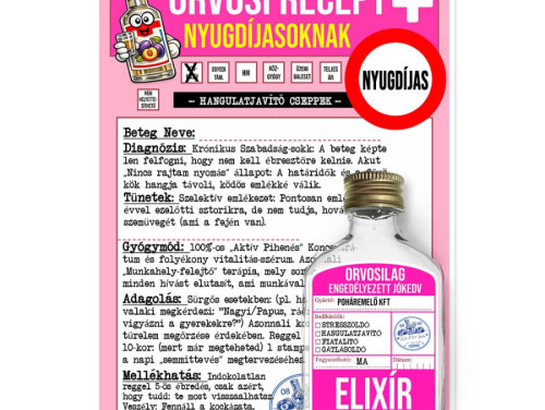 0 értékelés a következőhöz: Vicces Orvosi Recept + Laposüveg – Nyugdíjasoknak - Vicces Ajándék Nyugdíjasoknak