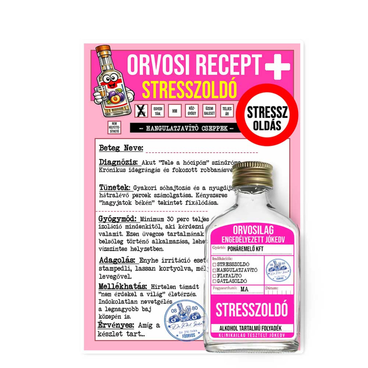 Vicces Orvosi Recept + Laposüveg – Stresszoldó - Vicces Ajándék Kollégának